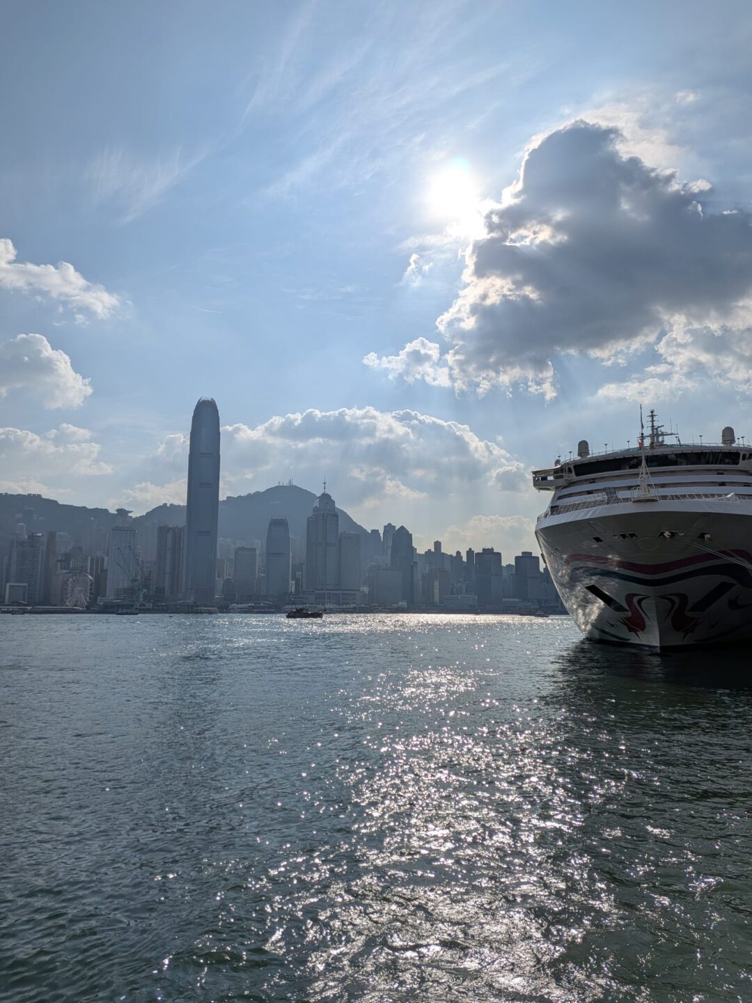 The harbour did its best impression of proximity. Kowloon felt close enough to touch—ferries stitching the distance, container ships idling, the water shifting from slate to steel to green. It’s the kind of view that shrinks your world and enlarges it at the same time. This is my home. Love it, plain and simple.