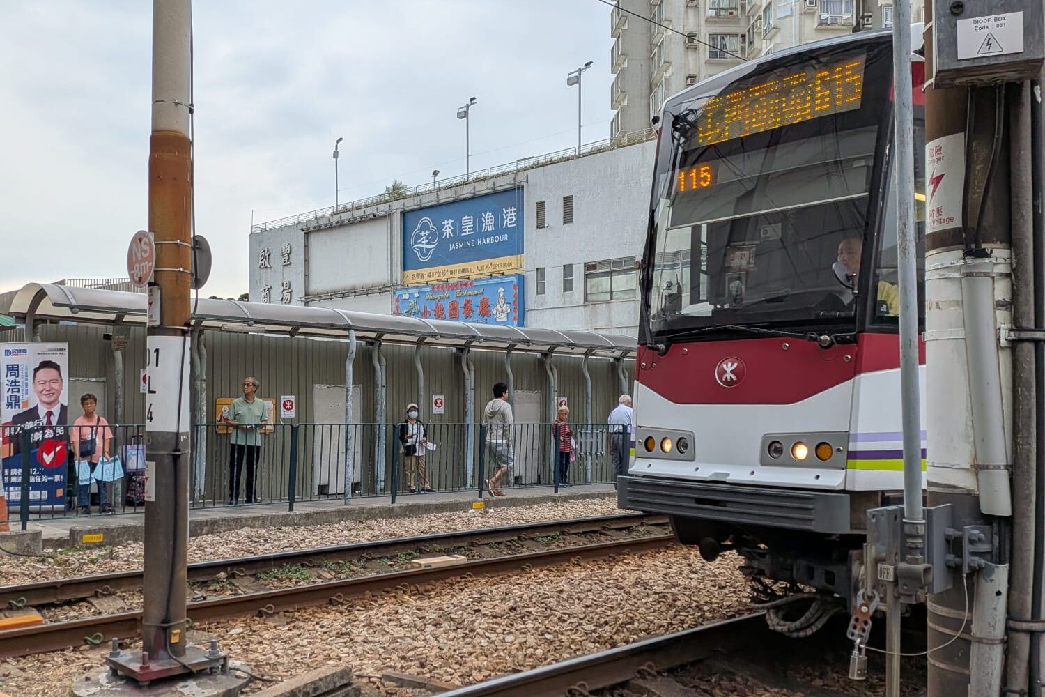 At the side of the promenade, the old Kai Fat mall keeps company with the newer MTR-run Ocean Walk. Mechanical versus old: one all polished escalators and clean lines, the other a little scuffed, a little stubborn. Outside the older strip, a café spills onto the pavement under willow trees, chairs angled toward the sea, an autumn picture in slow motion. Next to it, the Light Rail glides past, Tuen Mun’s veins, steel on steel, soft motor hum, doors chirping open and shut as it threads courtyards and crossings through weekday errands and weekend drift. The Light Rail fits Tuen Mun’s zeitgeist: built for short hops, street level, threading housing estates, running on an honour-based, gate-free system. Convenience plus speed.