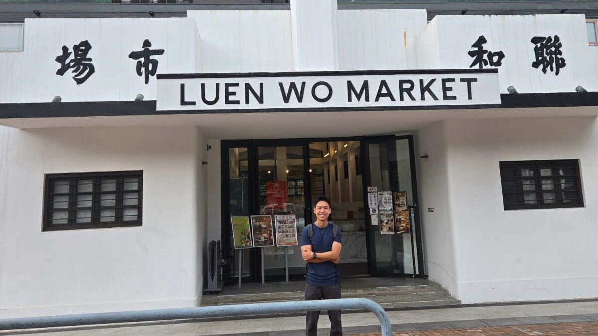 On the way back I detoured through Luen Wo Market. Post‑war market‑town bones remained—arcades, signboards, stalls spilling greens, the clatter of cleavers. Once the commercial heart for villages around Fanling, its rhythm lingered: hawkers calling prices, a herbalist measuring roots on a brass scale. You could taste the district in a bowl of noodles and read its memory in shutter patina.