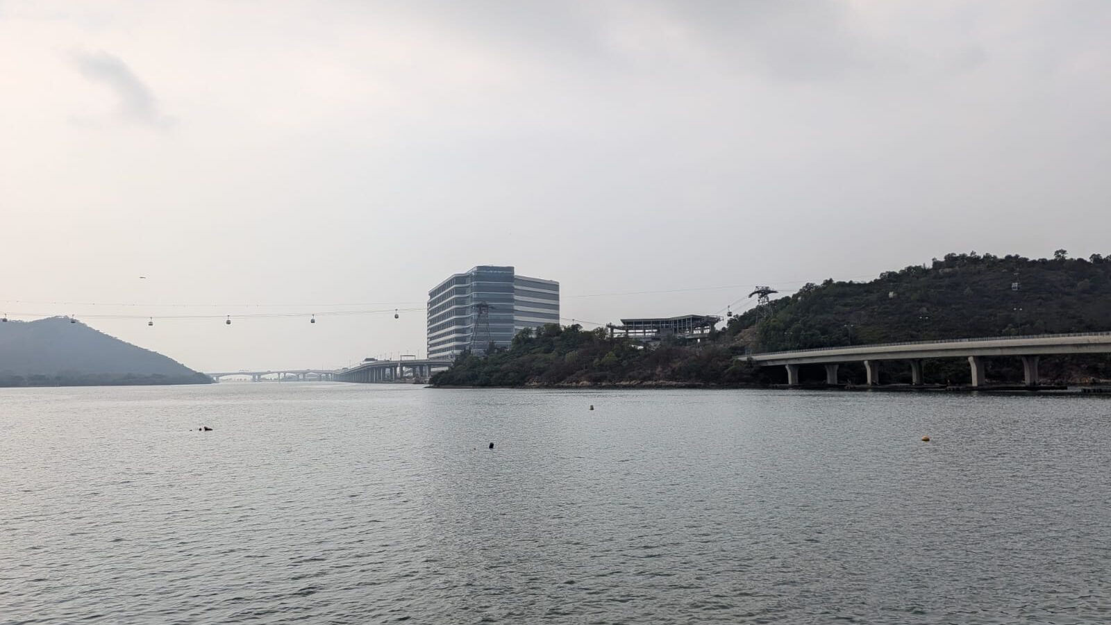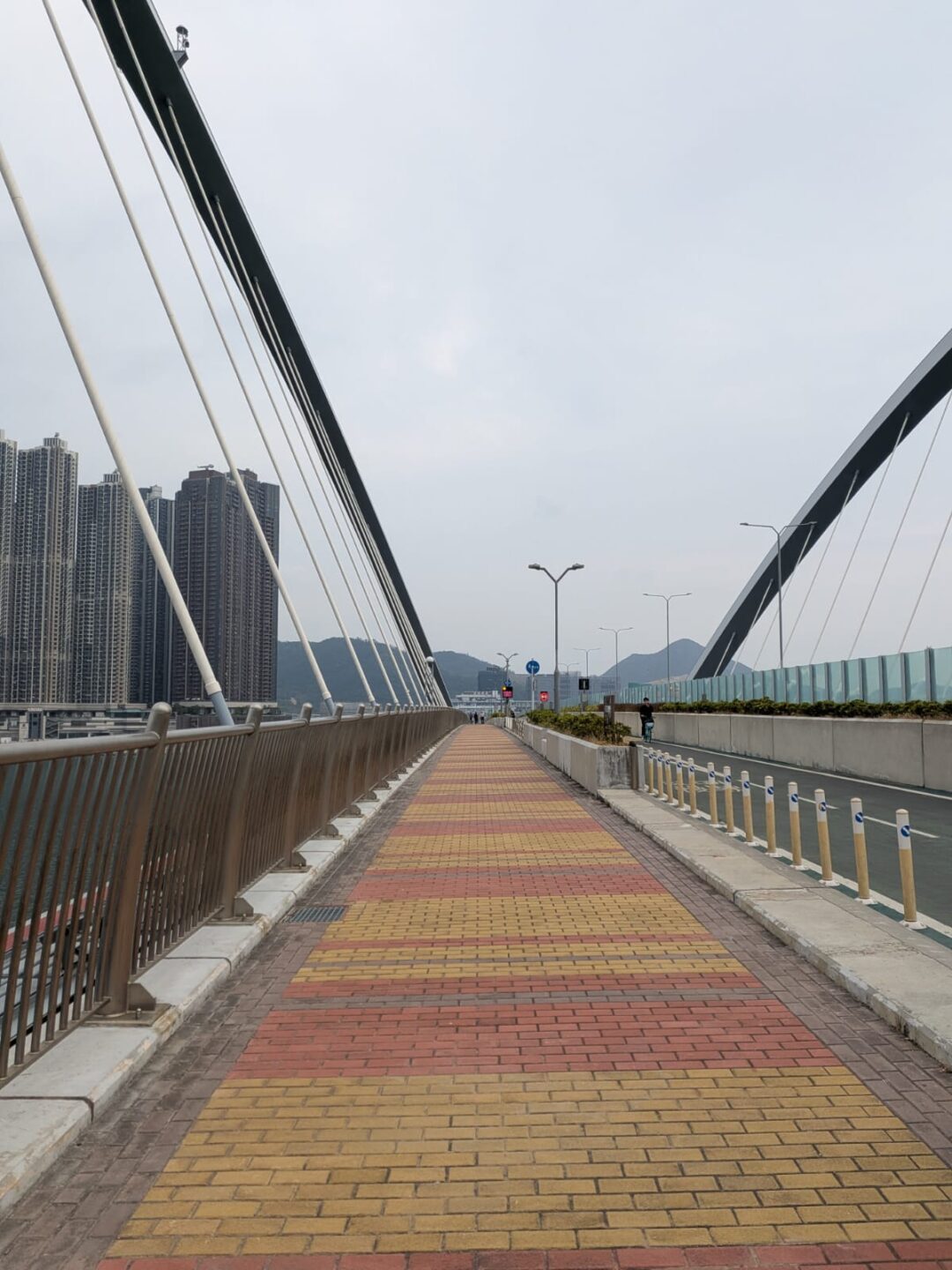 I stepped onto the Cross Bay Bridge. The horizon learned to curve. The arch looped like infinity and kept its promise by carrying me across. It was shaped to mimic infinity, a gentle claim that cities can keep going without coming apart, that return is part of progress. Underfoot, the cables hummed a note I felt more than heard. From the span, I could look far. LOHAS Park lay to one side and Tiu Keng Leng to the other, with Tseung Kwan O gathered like fingers into a palm. The cemetery terraced itself into the view, a reminder that a city is a circuit where beginnings and endings share a railing.