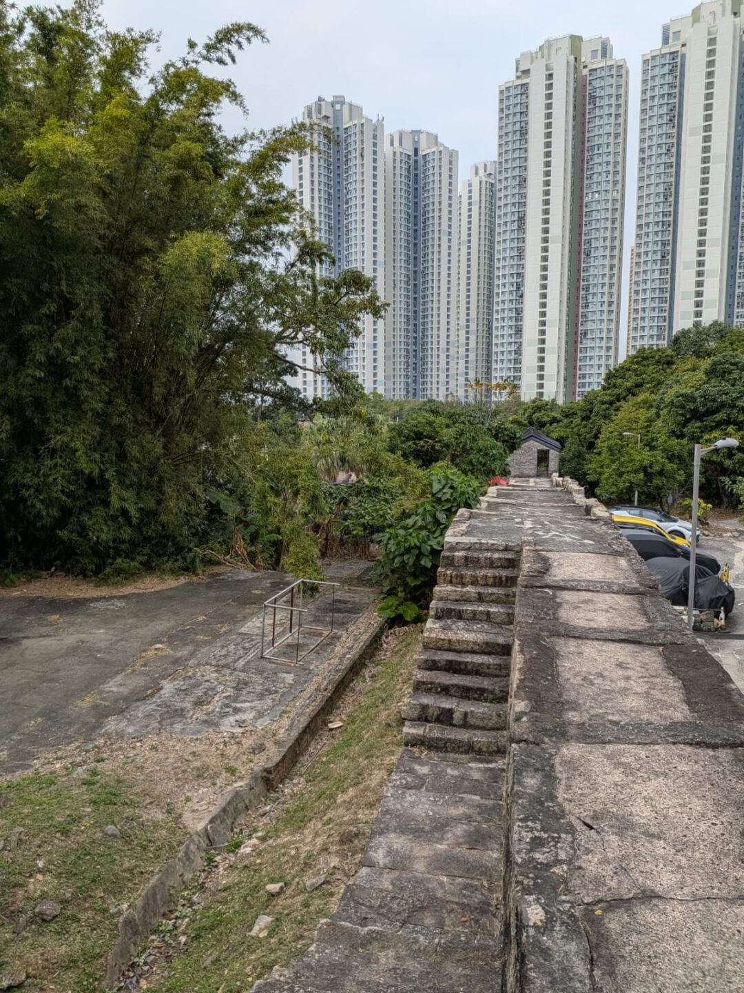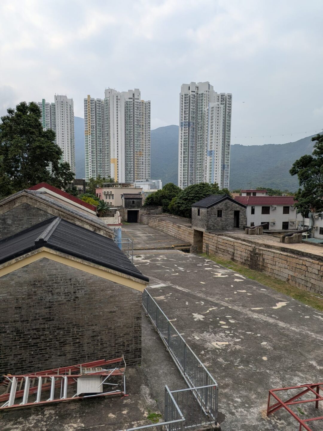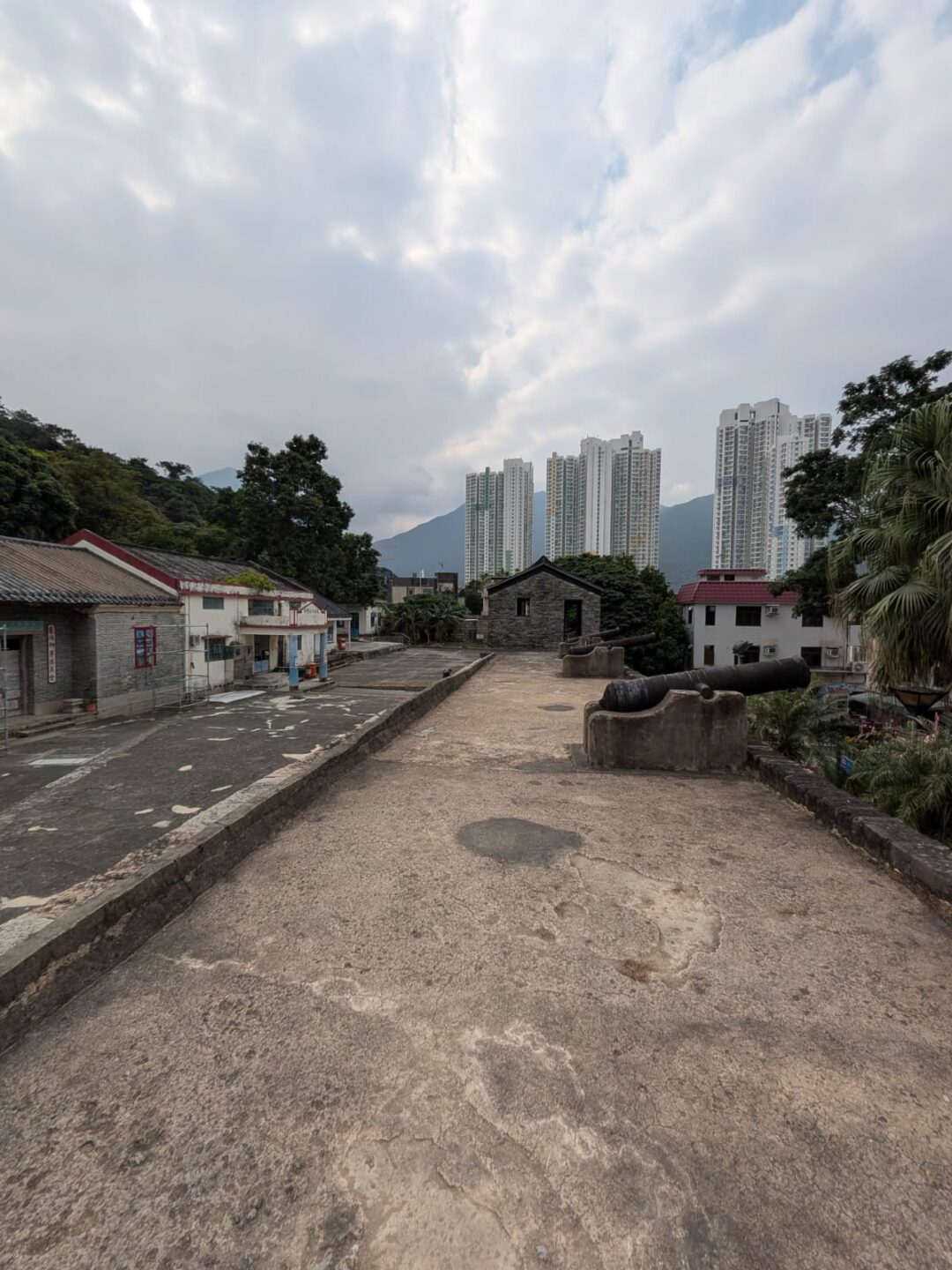 I cut across to Tung Chung Fort, quiet stone folded into the middle of modern blocks. Cannons rested in green, trees anchored the sky, and the wall kept a line through time. History here doesn’t declaim; it sits and watches the elevator doors open and close, a garrison turned garden, reminding you that the present is a recent tenant. Built in 1832 during the Qing dynasty to guard the coast against pirates and smugglers, the fort’s granite walls and watchtowers once faced the mouth of Tung Chung Bay; it later housed police in the colonial years, fell into disrepair, and was restored so the city would remember what it once defended.