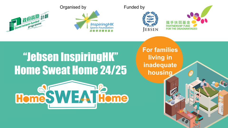 “Jebsen InspiringHK!” Home Sweat Home is a holistic programme co-funded by Jebsen Group and the Partnership Fund for the Disadvantaged, and organised by InspiringHK Sports Foundation that aims to improve the quality of life and growth environment of underprivileged children living in inadequate housing (including but not limited to subdivided flats, cage homes and rooftop slums) through sports and workshops on nutrition, home decluttering and posture correction. It helps beneficiary families build resilience against adversity and educates them on establishing healthy habits and a positive self-image, empowering them to take charge of their lives.
