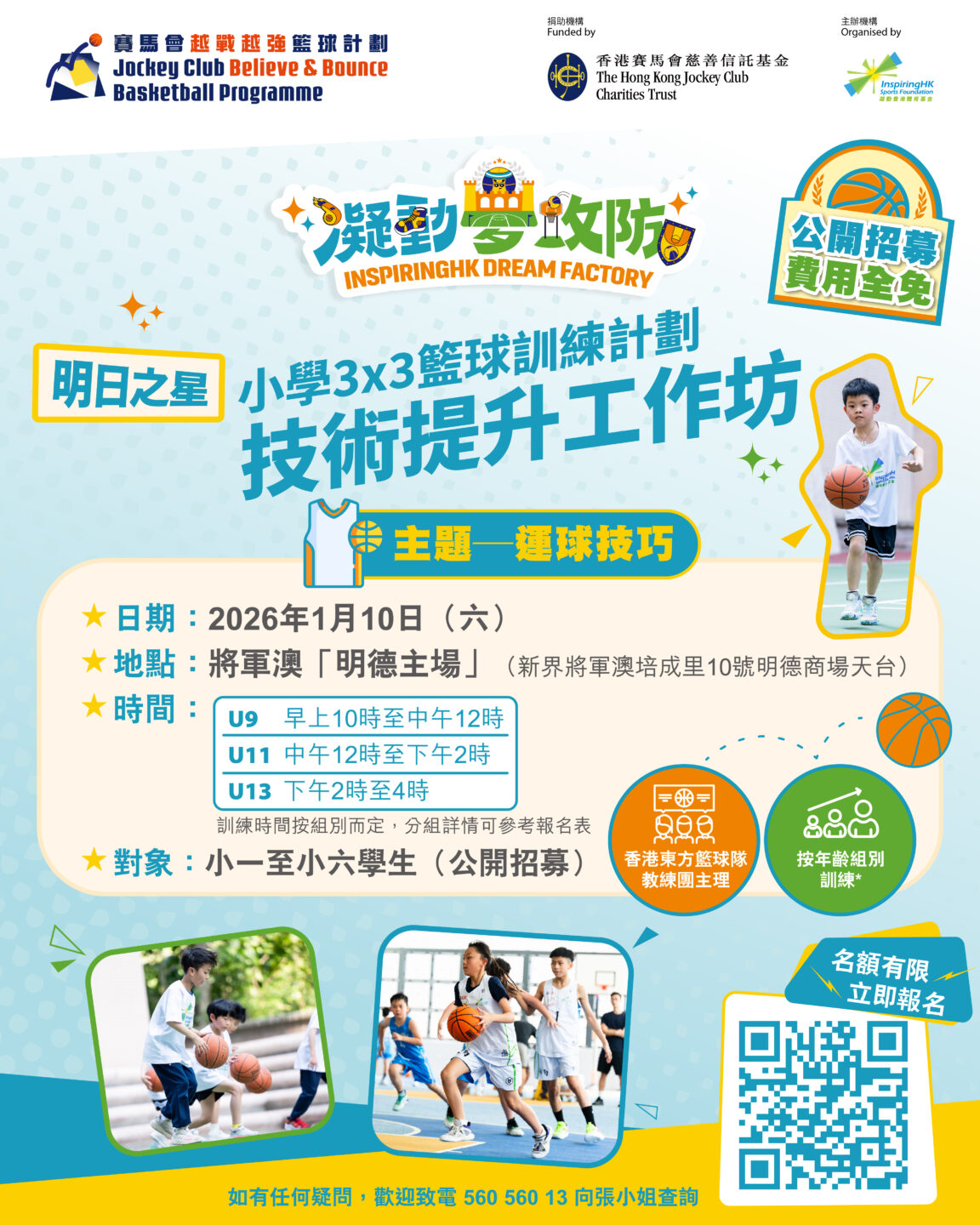 「明日之星」首個公開招募活動「🏀技術提升工作坊」正式開放報名!詳情如下:
