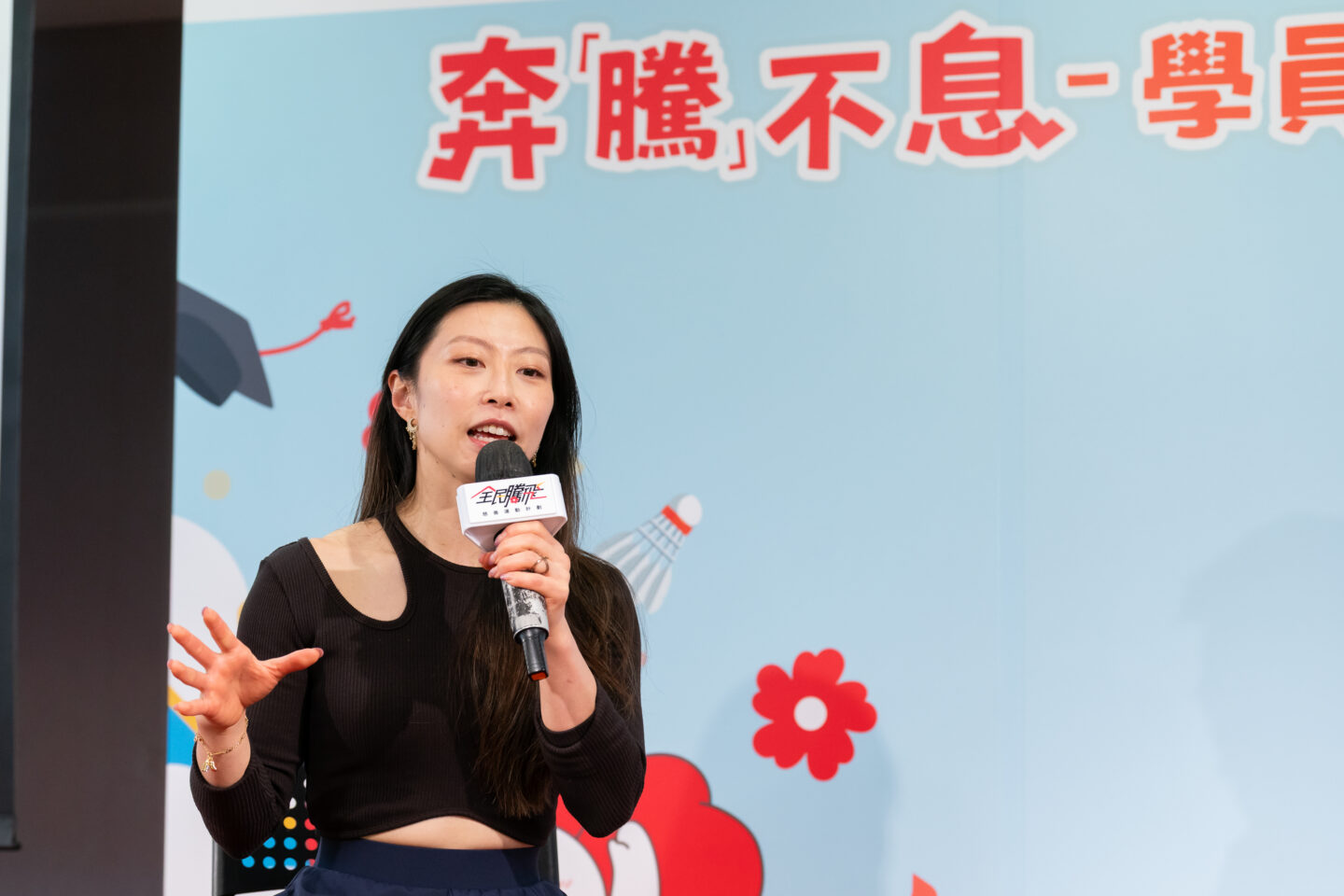 最後,我們非常榮幸邀請到香港女子體操運動員黃曉盈小姐出席活動。她以自身克服傷患的勵志體育旅程,勉勵在場家長與學生:為自己訂立清晰目標,勇敢追夢。