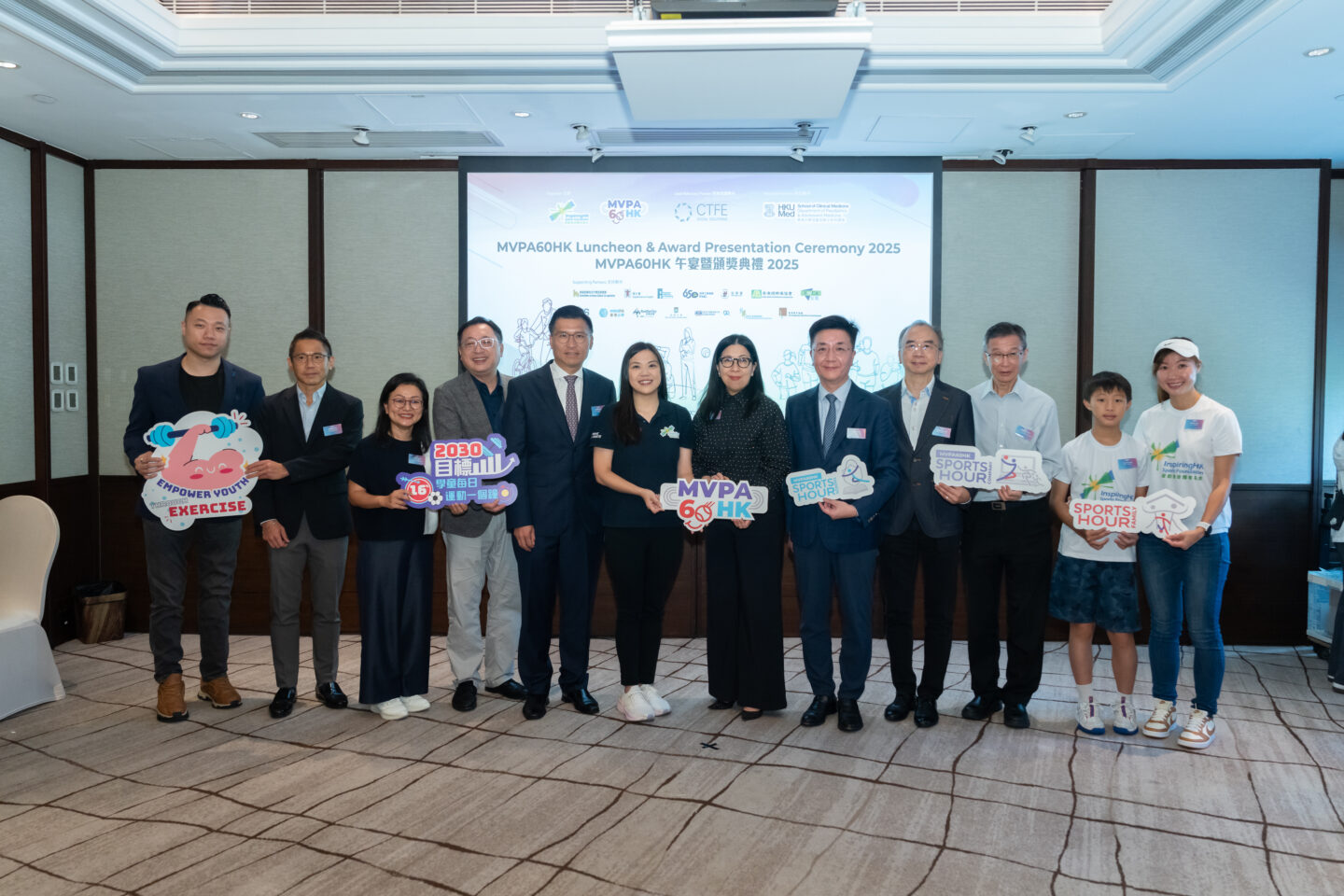 由凝動香港體育基金主辦,並獲策略倡議夥伴周大福企業旗下慈善平台 CTFE Social Solutions(周大福企業社會方案) 全力支持的MVPA60HK 午宴暨頒獎典禮 2025,於9月5日假千禧新世界香港酒店圓滿舉行。頒獎典禮聚焦家庭、學校、企業及機構的共同努力,總結並表彰各界持份者過去一年在提升兒童及青少年的「MVPA60HK 指標」的達標率的卓越成果。