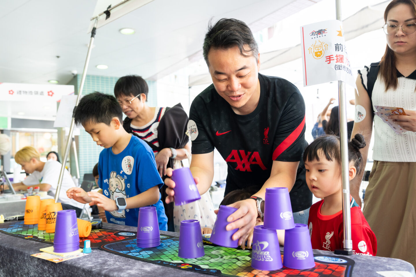 是次家庭運動同樂日於充滿懷舊風情的石籬街市舉辦,活動多元化,包括親子運動藝術創作坊,讓大人及小朋友攜手製作獨一無二的劍球和躲避盤,享受創作的樂趣。同時,我們在連接石籬商場的空地特設椅子瑜伽及功夫扇居家運動體驗課,讓參加者輕鬆舒展身體、提升靈活性。此外,現場還有競技疊杯攤位,吸引男女老幼挑戰手速,氣氛熱烈且活力四射,為活動增添無限樂趣。