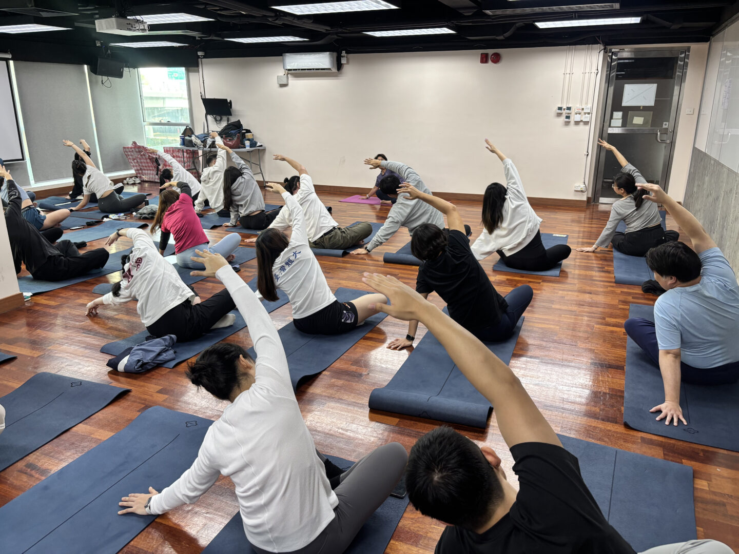 當天,一眾凝動同事由辦公室出發,去到活動場地。我們團隊裡既有瑜伽高手,亦有不少初次接觸瑜伽的同事。但在專業瑜伽導師的帶領下,大家都很投入和專心。我們從最基礎的呼吸練習開始,細心感受每一次緩慢的吸氣與吐氣。接著,我們跟隨導師逐步進入由淺入深的伸展動作。當做到下半身拉伸時,不少同事明顯感受到肌肉被拉扯的感覺。導師解釋,這往往是因為平日久坐,身體悄悄累積了不少緊繃。