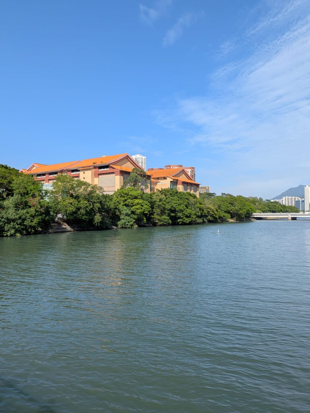 Leaving the temple, I followed the Shing Mun River promenade. This is where Sha Tin takes a deep breath. The path widens, and the city’s soundscape thins to bicycle bells, soft conversation, and the occasional skate wheel clicking over a seam. The river is not dramatic, but it is steadfast, a corridor of light and motion that gives the district its sense of scale.