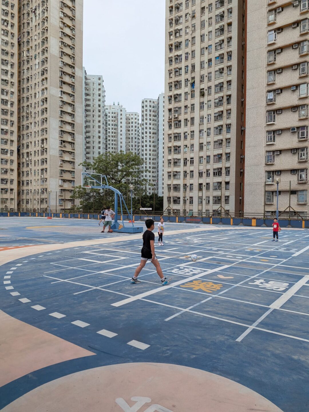 I climbed to the rooftop courts near Siu Hei Court. Kids everywhere: crossover dribbles, small arguments settled with rock-paper-scissors, the universal language of playground rules. It pulled me straight back. Organized sports take up most weekends now, with booked pitches, fixed rosters, fees and fixtures, but these courts taught a different rhythm: make it, take it; losers off; call the score loud so the next team hears. One point at a time, winner stays. A Saturday well spent. It still is, for the kids learning pace and space, and for anyone on the railing, letting the noise and the wind take over.