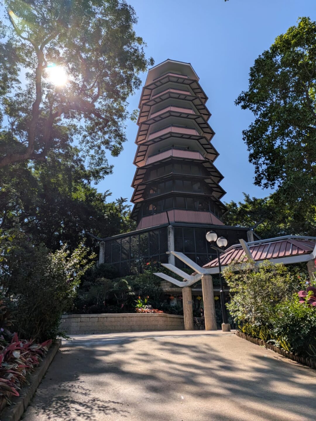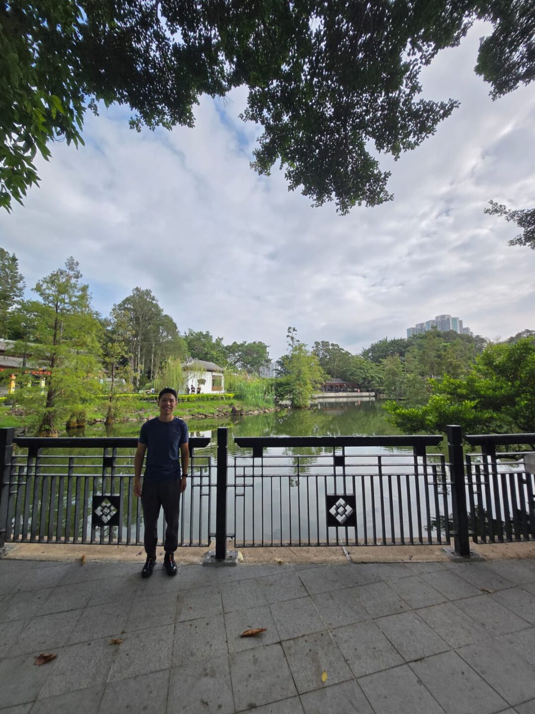 Yuen Long Park rises like a resort: palms, red Spanish brick, and a breeze that edits the day. I climbed the Aviary Pagoda, each level opening a wider circle until the plain and its mountain ring settled into one view. For a moment it didn’t feel like “Hong Kong” as the postcards promise; it felt like a whole territory in a single frame: ridgelines stepping off toward Tai Lam, rooftops threading into market streets, light‑rail bells carrying across the trees.