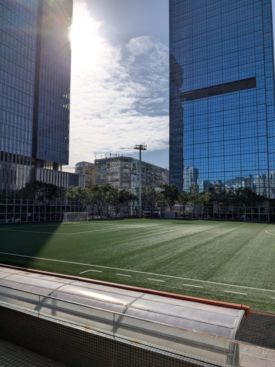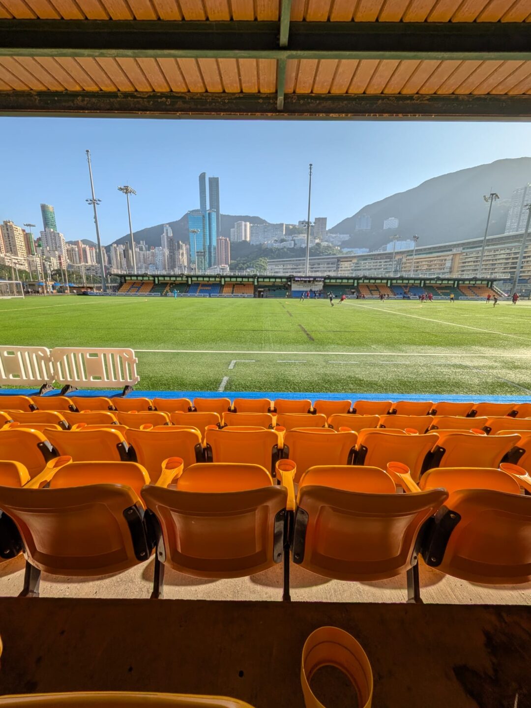 I cut inland to the Hong Kong Football Association ground and leaned on the rail to watch an amateur match—almost like being somewhere else. Expats and locals traded commentary in two languages, the linesman’s flag bright against the turf, the city briefly agreeing on rules, time, and a scoreline. From there I carried on along Sports Road, the Happy Valley Racecourse opening in green relief. On a Sunday the infield turns into a commons: joggers and frisbee arcs, prams and five‑a‑side, sun scratching at shoulders while towers look on like grandstands of glass.