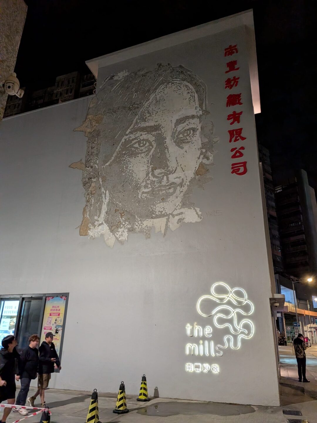 I followed the weave to The Mills. If Lai Chi Kok has D2 Place, Tsuen Wan has The Mills: cotton memory spun into a contemporary hub. The restoration kept the mill’s bones—concrete, spans of light, stairwells that feel honest—and layered in galleries, cafés, maker floors, and that photogenic interior. Outside, Vhils’s carved portrait, Nameless Heroes, sometimes called “factory girl,” faces the street, a tribute to the workers who powered Hong Kong’s industrial golden age. It reminds you what the city used to be; step inside and the interior hints at what it will be. Even the police station here looks freshly minted: glass, angles, a modernist calm that matches the remake.