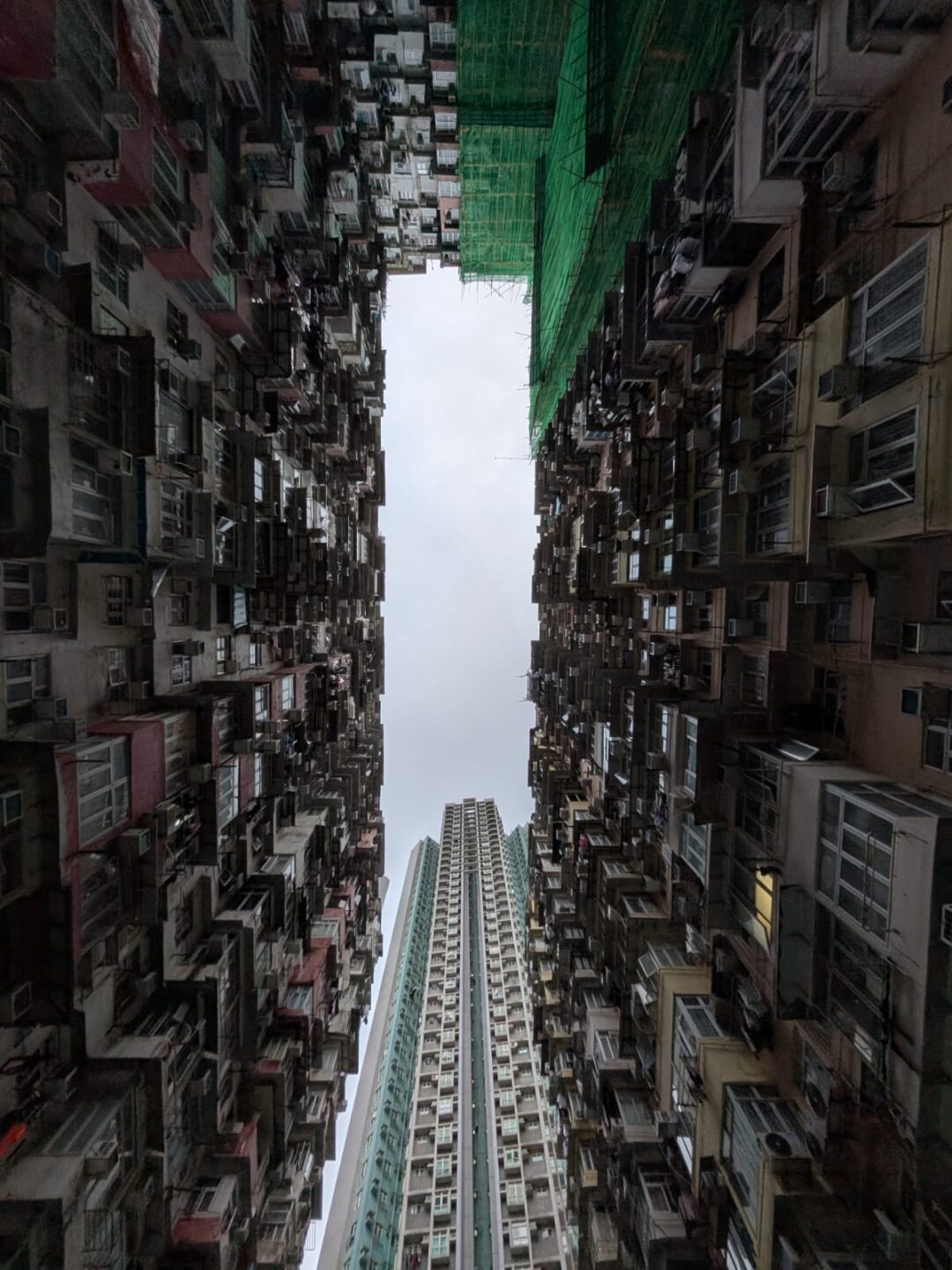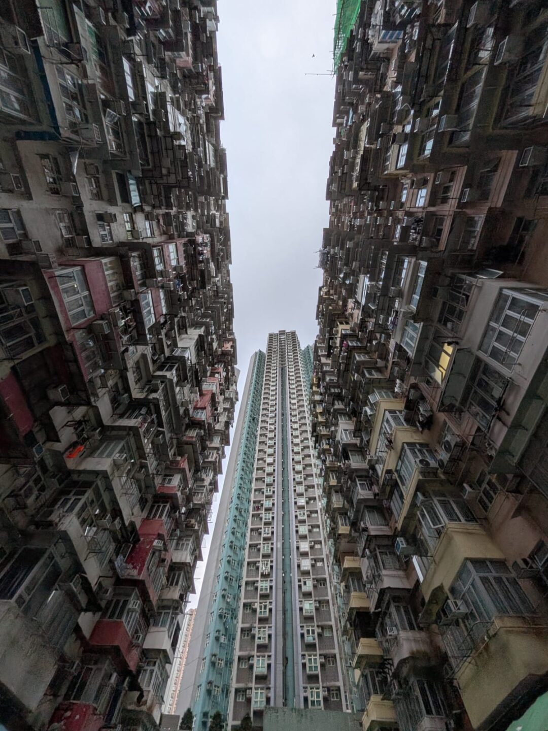 Ping Shek Estate reared up and made me small. I stood in the well until my hands shook, a perfect rectangle of sky, walls lifting in red, green, blue. The atrium was a lens that swallowed me, a geometry of humility.